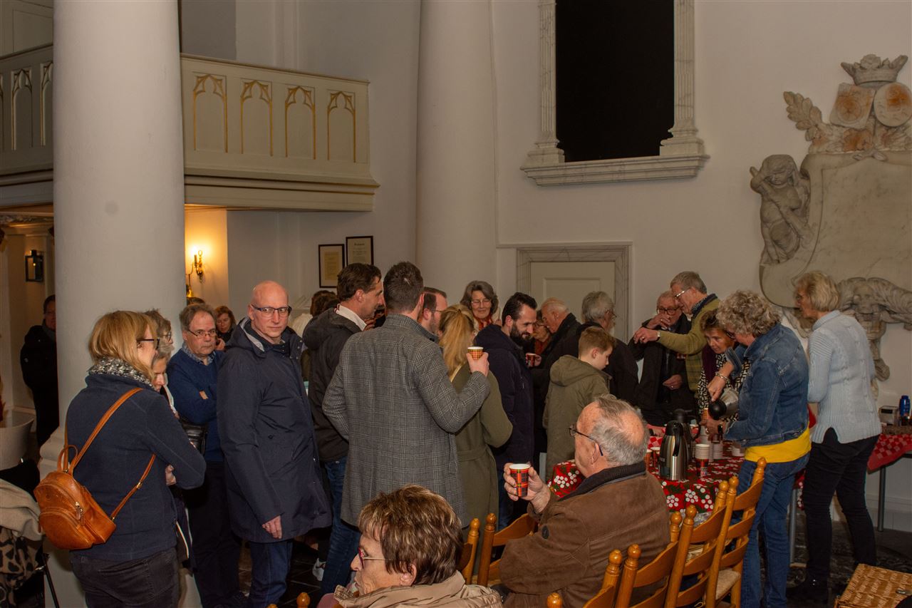Het was een warme bijeenkomst, waarbij we veel hebben gezongen en naderhand getrakteerd werden op gluhwein, chocolademelk en lekkere kerstkransen.