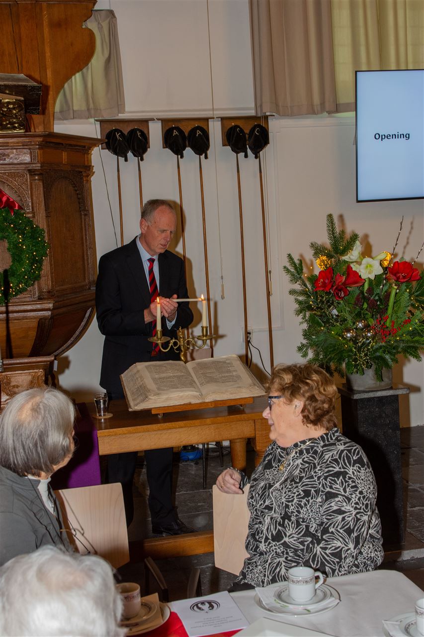 Dit jaar hebben we de vorm iets aangepast. In plaats van een broodmaaltijd was er een High tea en op verzoek was het tijdsbestek waarin alles gebeurd wat korter en begonnen we eerder op de middag. Voor de high tea was er een kerkdienst met een hoop vertrouwde kerstliederen; Voorganger was Jacolien Immerzeel. En tijdens de High Tea hebben Jaap en Joke van Toor ons laten genieten van hun muzikaliteit. Er was zang, pianospel en er werd