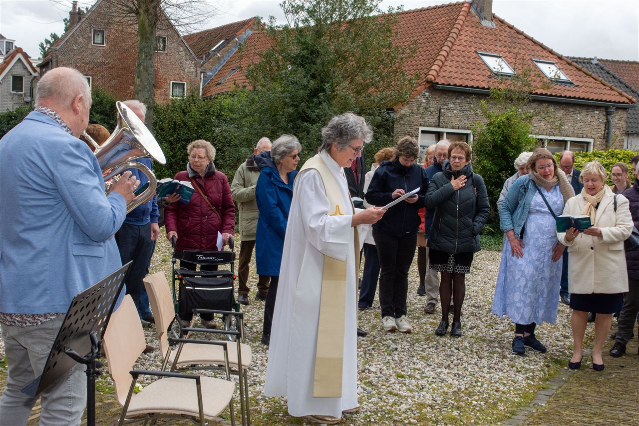 In de dienst ging voor Ds. Hans van der Linden. De zang werd ondersteund door de cantorij en leden van de zanggroep, die samen het koor vormen.